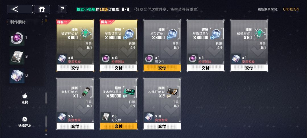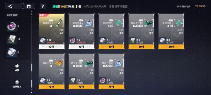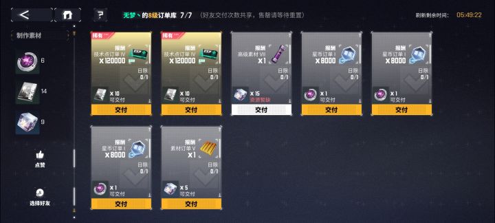 原料交易所完成好友订单既不会给好友材料,也不会导致好友无法完成。
