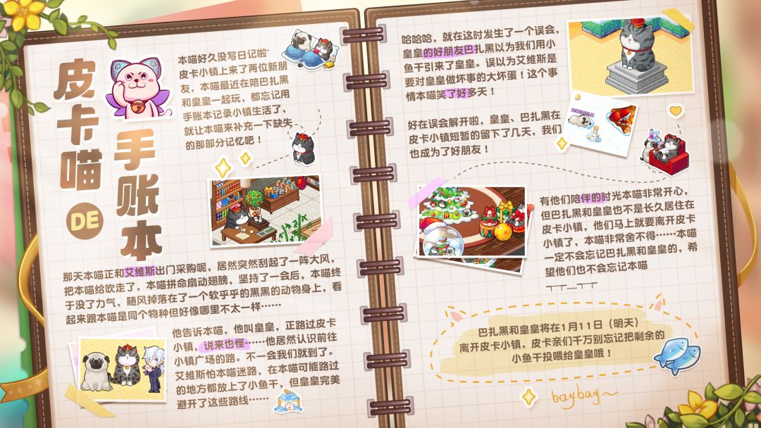 巴扎黑和皇皇将在1月11日(明天)离开皮卡小镇,皮卡亲们千万别忘记把剩余的小鱼干投喂给皇皇哦!
