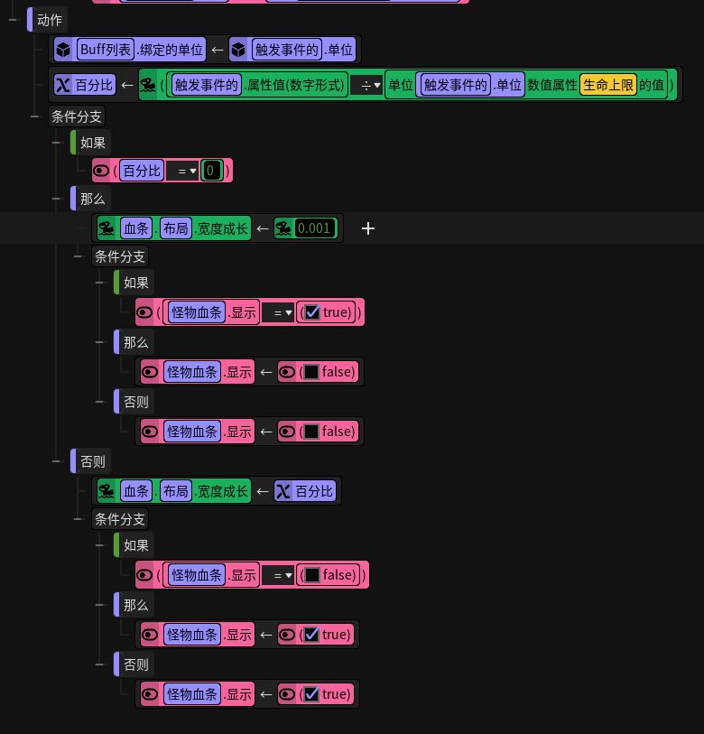 触发这个动作时,将buff列表绑定单位绑定为触发事件的单位(也就是怪物)