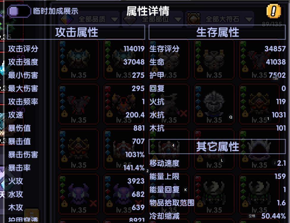 不点首伤,其他拉满(我这里带的护甲增幅是试验130以上秘境的,正常可以带回护盾)
