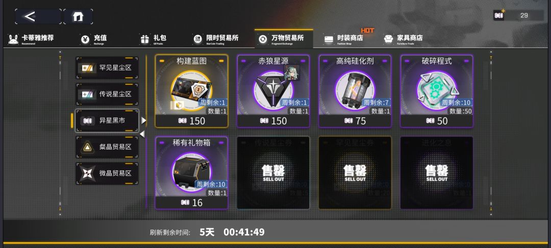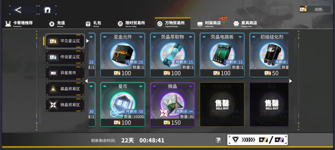 换完开始时打折扣的构建蓝图和微晶,不折扣的构建蓝图也换了。然后换自己缺的战利物资。