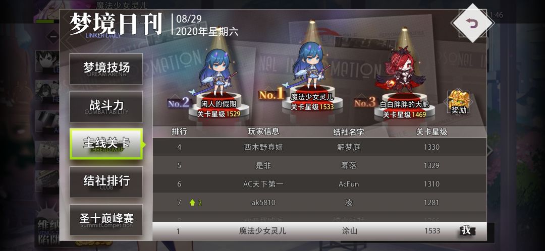 第五部分是主线关卡部分 目前国服内测开放至13章 满星1533 我是最早满星的(内测第六天上午)