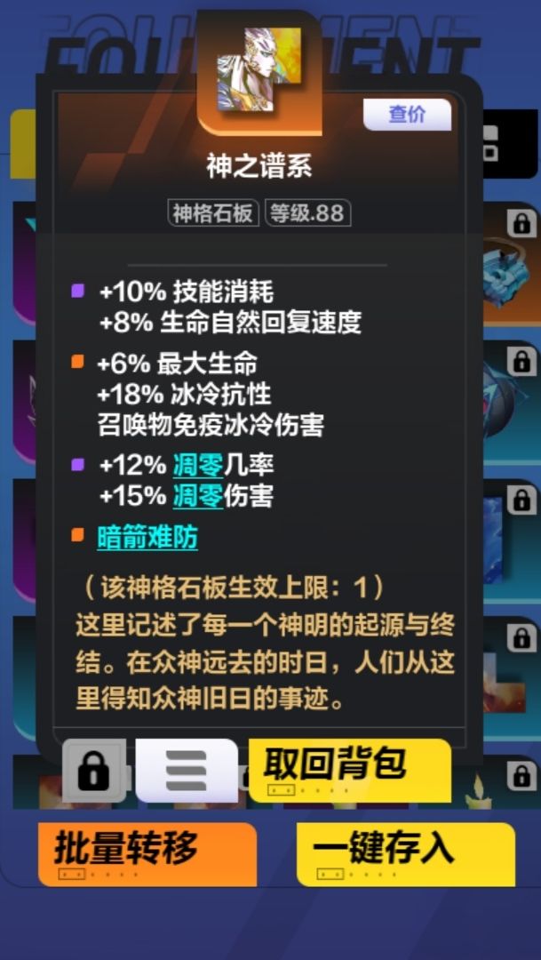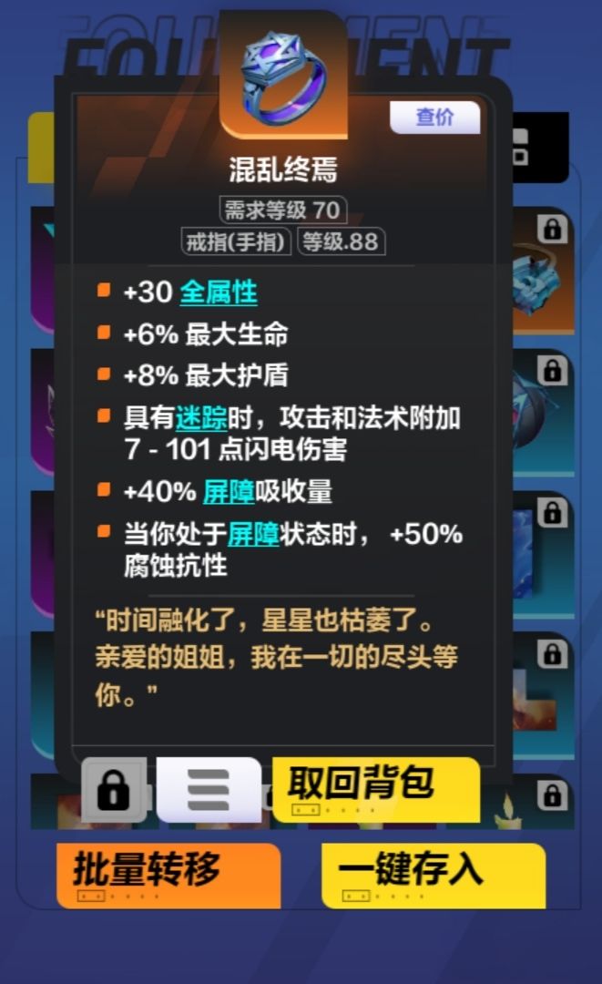 大额出火让买家摆神格石板 混乱终焉 泛泛倾心腰带等等 大家都知道之前有条腰带卖了30万火吧 那么有些特定词条对某些BD有用 我们标高价也是合理的 如果没有直接去交易行几火买条最垃圾的泛泛就好 官方说保留泛泛是为了BD多样性 那么我这条3召唤伤泛泛卖5万火不过分吧?
