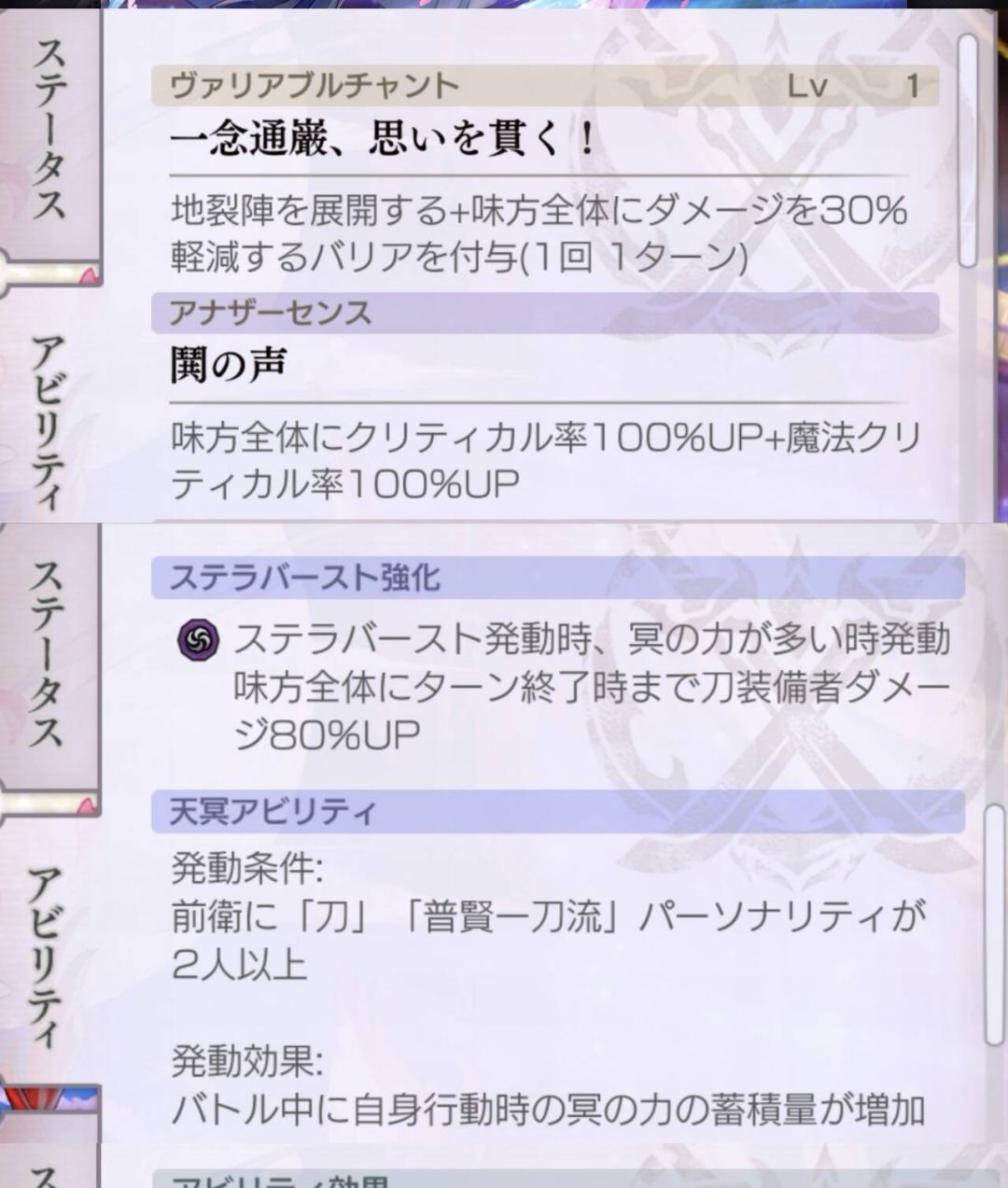 根据前排的【刀】或【普贤一刀流】个性角色数积蓄【胆力】