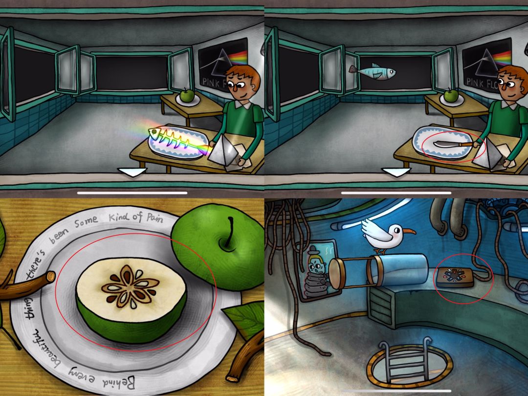 给想吃鱼的人,他会将鱼复活后掏出一把小刀,用小刀切开苹果可以得到火箭二楼的密码