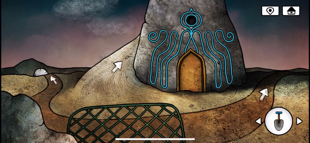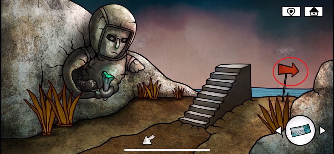 来到小屋左边,捡起沙漏贴纸,继续往左走,点击火箭大门