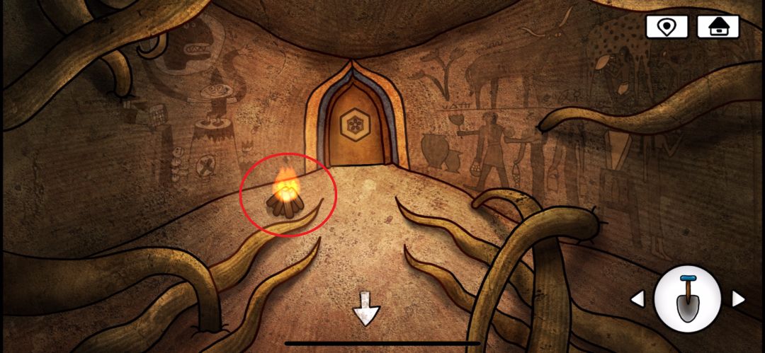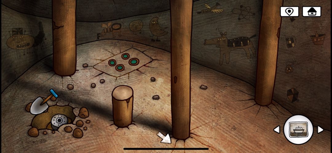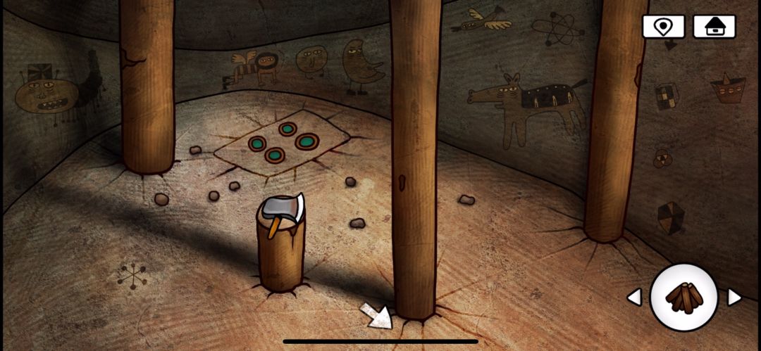进去后拿起木桩上的斧头,根据涂鸦小男孩房间的电视剧可以得出,左侧的位置可以用铁铲挖出太阳符石
