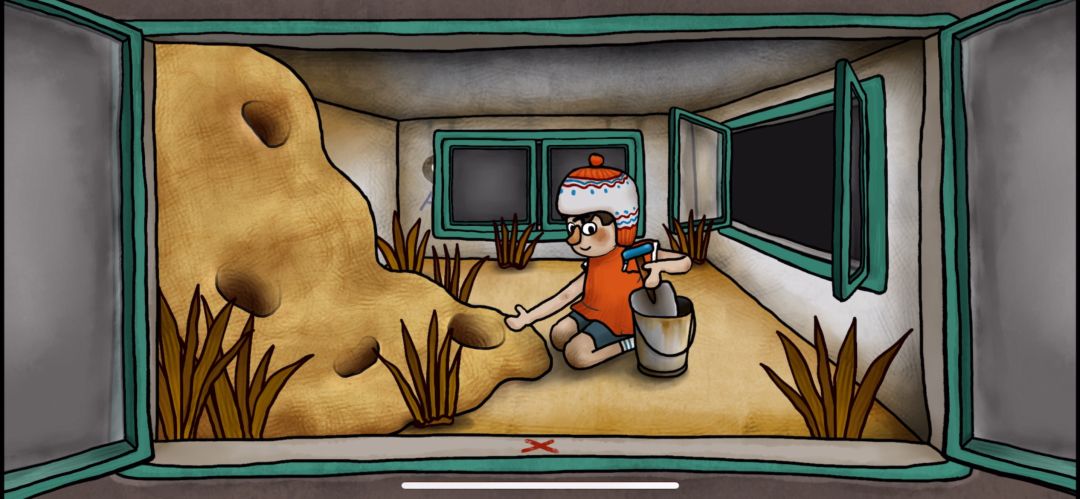 进入房间后,将铁桶递给小男孩,可以得到铲子,打开前面房间的窗户