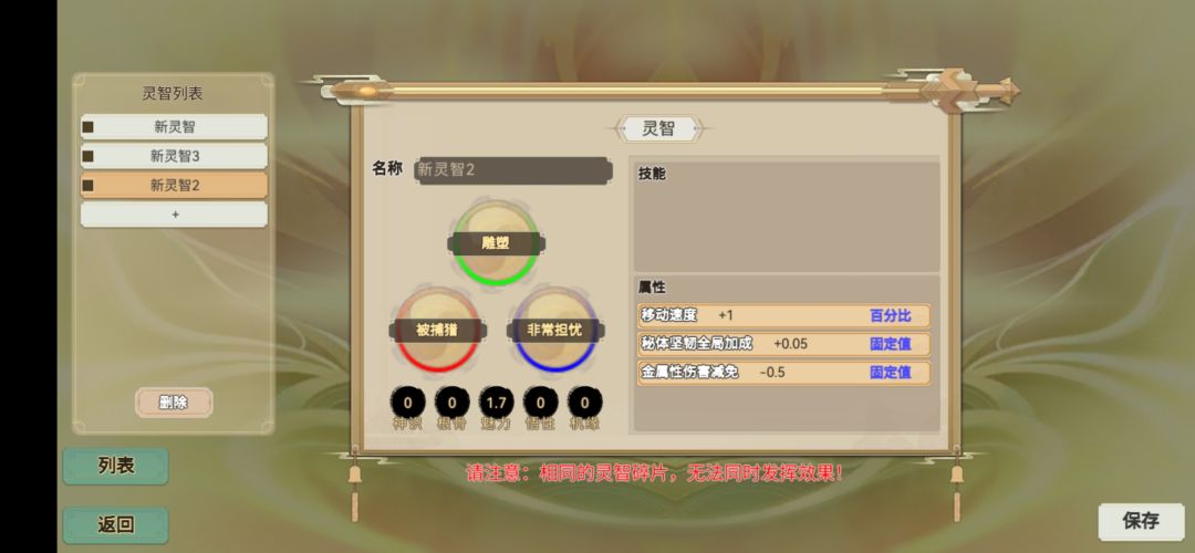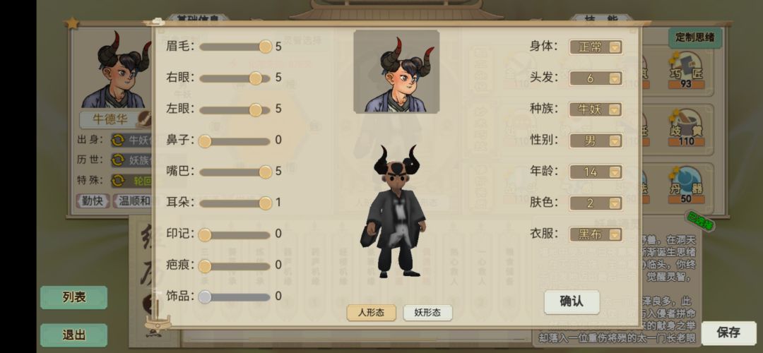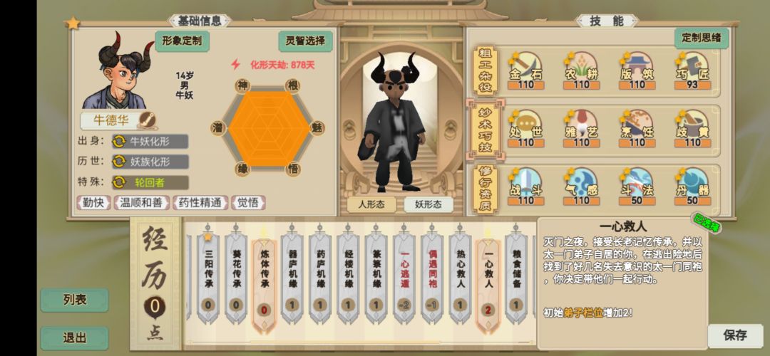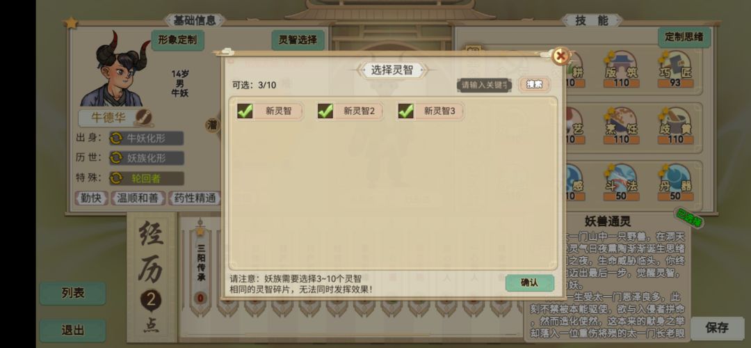 第三步:前面准备工作都做好,把你选的灵智都勾选上,点保存,就能生成你想要的妖族啦,注意自选人物,记得先选经历,不先选经历,轮回者那边会随机生成经历。