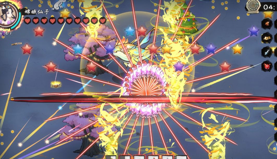 作为一个类吸血鬼游戏,那必须要爽,而且要快速的爽起来。这点本作做的还行,游戏一出来就告诉你本作最核心的就是玩组合神器。这些神器基本都是大范围攻击,效果华丽,伤害不俗,成型后非打boss不走位,直接放置问题都不大。不过本作法宝与道具类型是有点匮乏,当然正是本作内容不多,所以才相对比较好出组合神器。