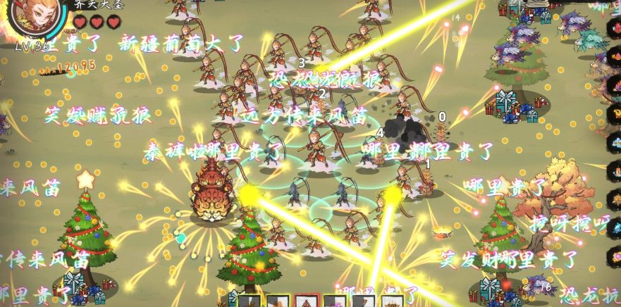 鲲作为法宝的升级比别的升级段数多,前后升级正好得到2颗半心(每半心抵挡一次攻击)。你就说这是不是故意的吧?本作初始选哪吒时,哪吒会喊出是我,是我,就是我或者我命由我不由天的台词。这明显是玩相关童年动漫与电影梗的。类似玩梗的还有弹幕里居然有哪里贵了,这种前不久直播卖货的梗。更近的还直接把游戏里的树换成圣诞树。我看到开发组,名叫两把刷子,隐约感到可能爱玩梗是他们的习惯了。