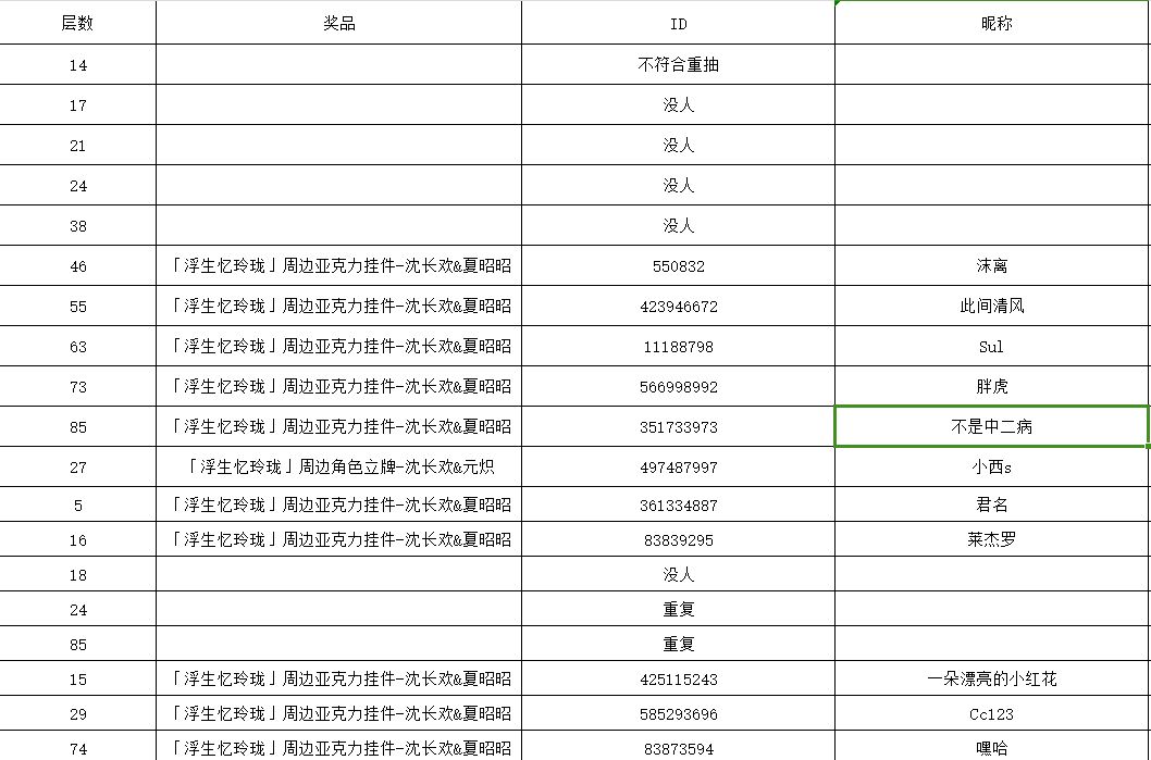 抽奖名单如下,到底谁才是最终的幸运儿呢~