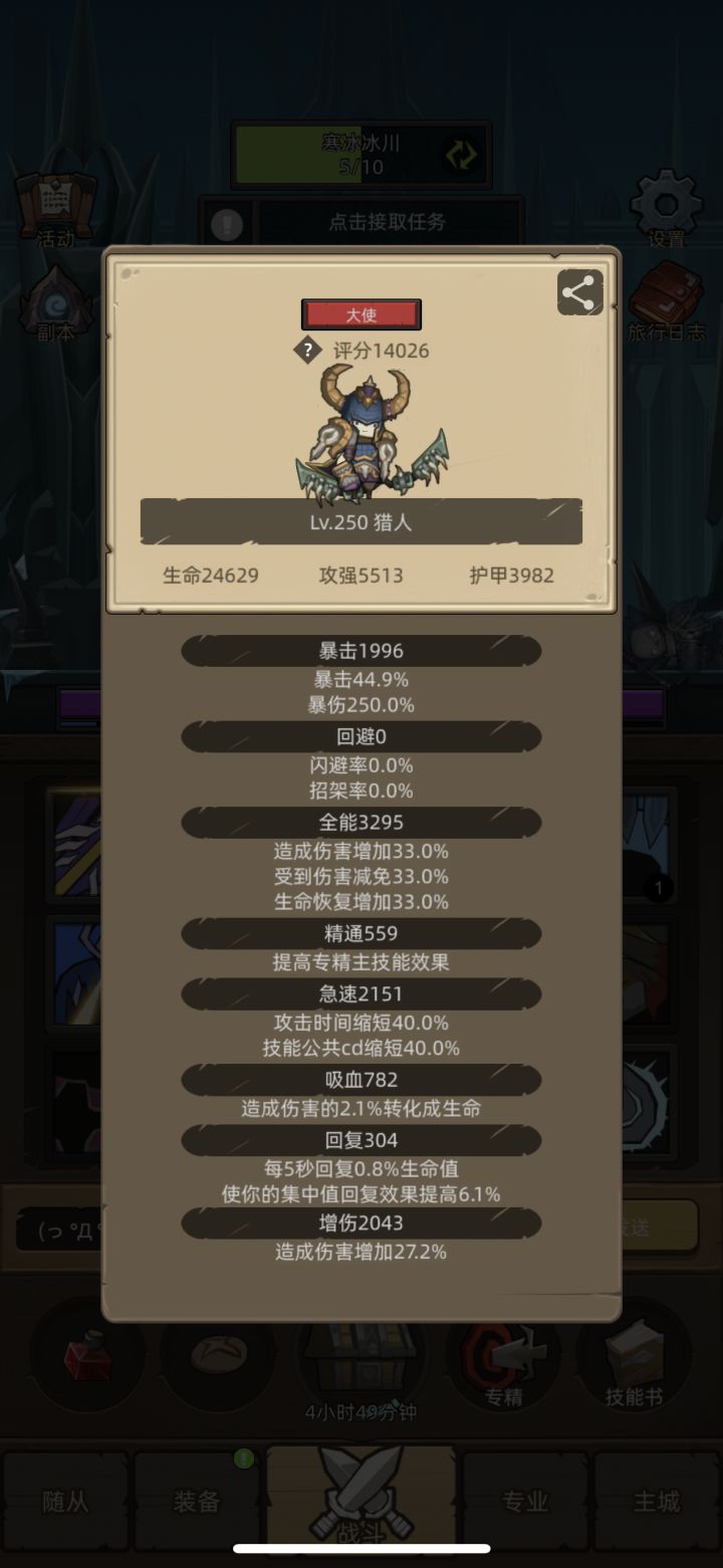 6.装备属性:首先点开游戏设置里自带的攻略,看看词条含义。明白概念之后:暴击、急速必须满;全能、增伤多多益善,吸血2-3条即可,精通、回复、闪避不需要。升级过程不需要太追求完美。