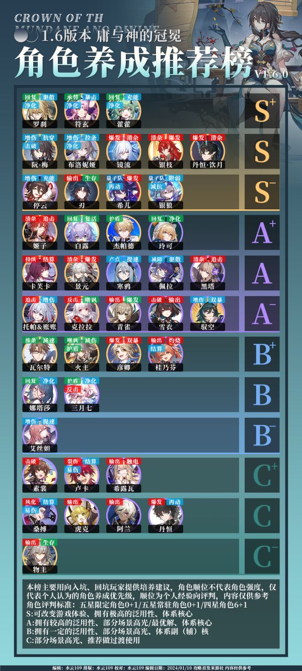 【V1.6攻略】角色养成推荐榜V1.6.0