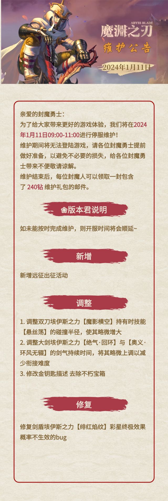 【魔渊情报局】远征出征活动开启,1月11日版本维护公告(内含密令~)
