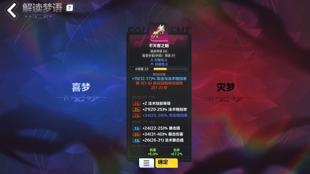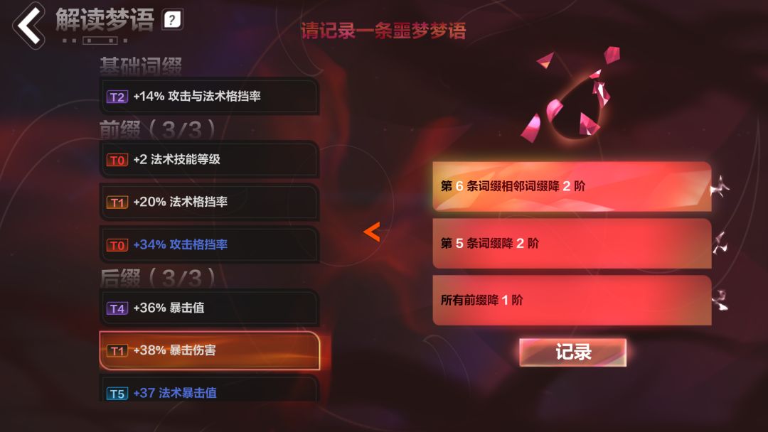 解梦,把基础词条顶掉,拿格挡率词条