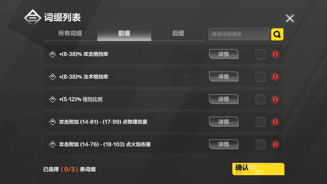 前缀一定要空一个词条!用来打攻击格挡率