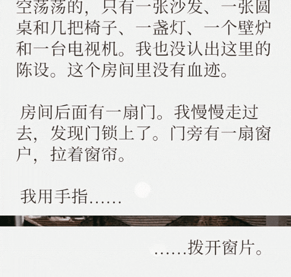 随着文字的叙述,屏幕前的“你”也忍不住去划拉了下那张细细的图片,图片随之放大,灰蒙蒙的街景随之而出——真的可以“打开”窗户!