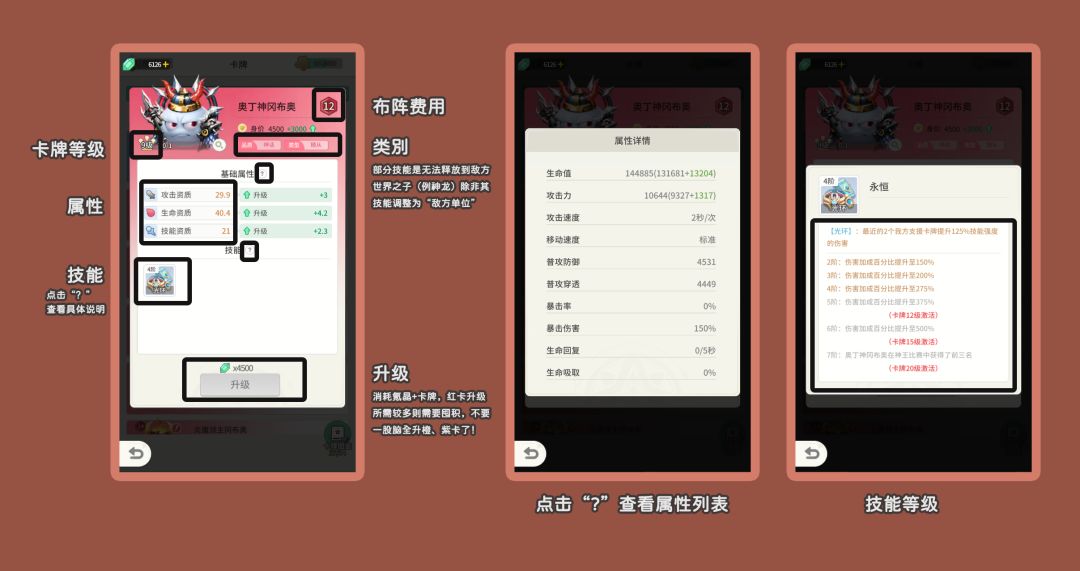 Tips:红卡升级所需较多则需要囤积,不要一股脑全升橙、紫卡,前期可为了拿时之沙消耗些~