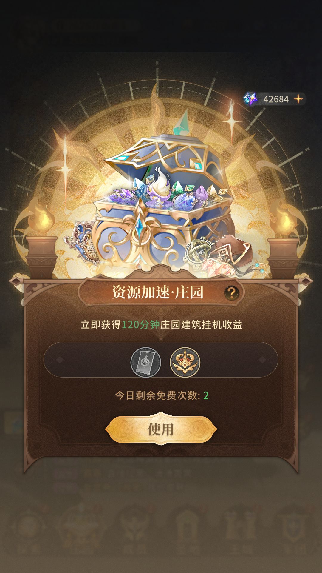 另外祖宗大人每天还可以拥有1次免费加速庄园建筑产出的机会(后续商会等级提升后,免费加速次数还可以增加),还请不要忘记使用~