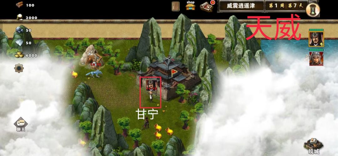 打法思路:开局待机到孙权来攻下城池,然后我们把城池打下来激活甘宁登场,接下来等着甘宁攻城就可以。