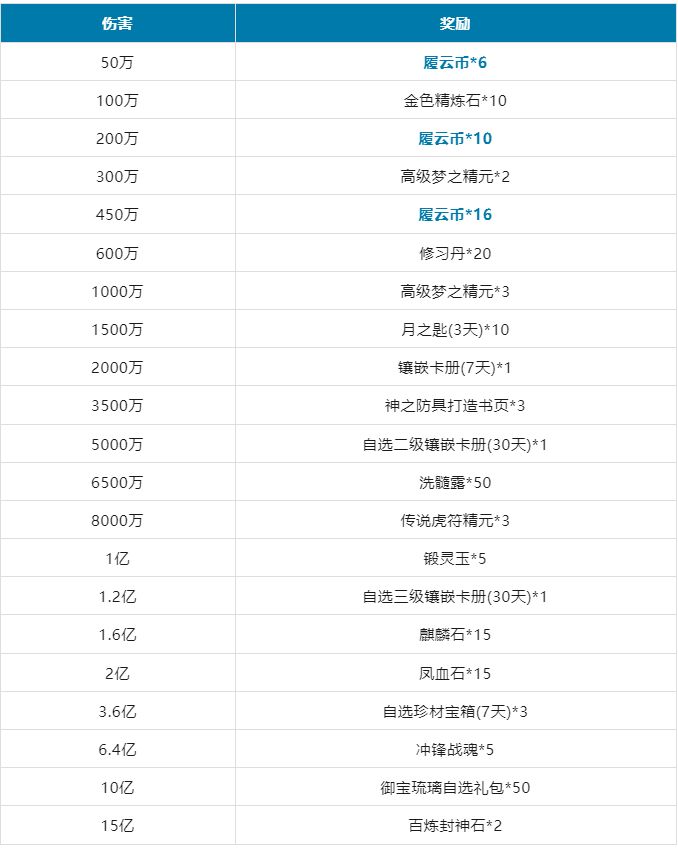 单局内全队伤害达到指定阶段有概率获得对应阶段奖励。