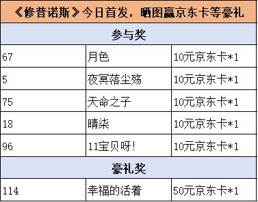 【开奖】《修普诺斯》今日首发,晒图赢京东卡等豪礼