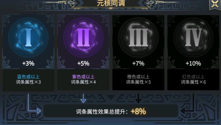 因为元核词条达到一定颜色数量的时候可以激活元核同调。