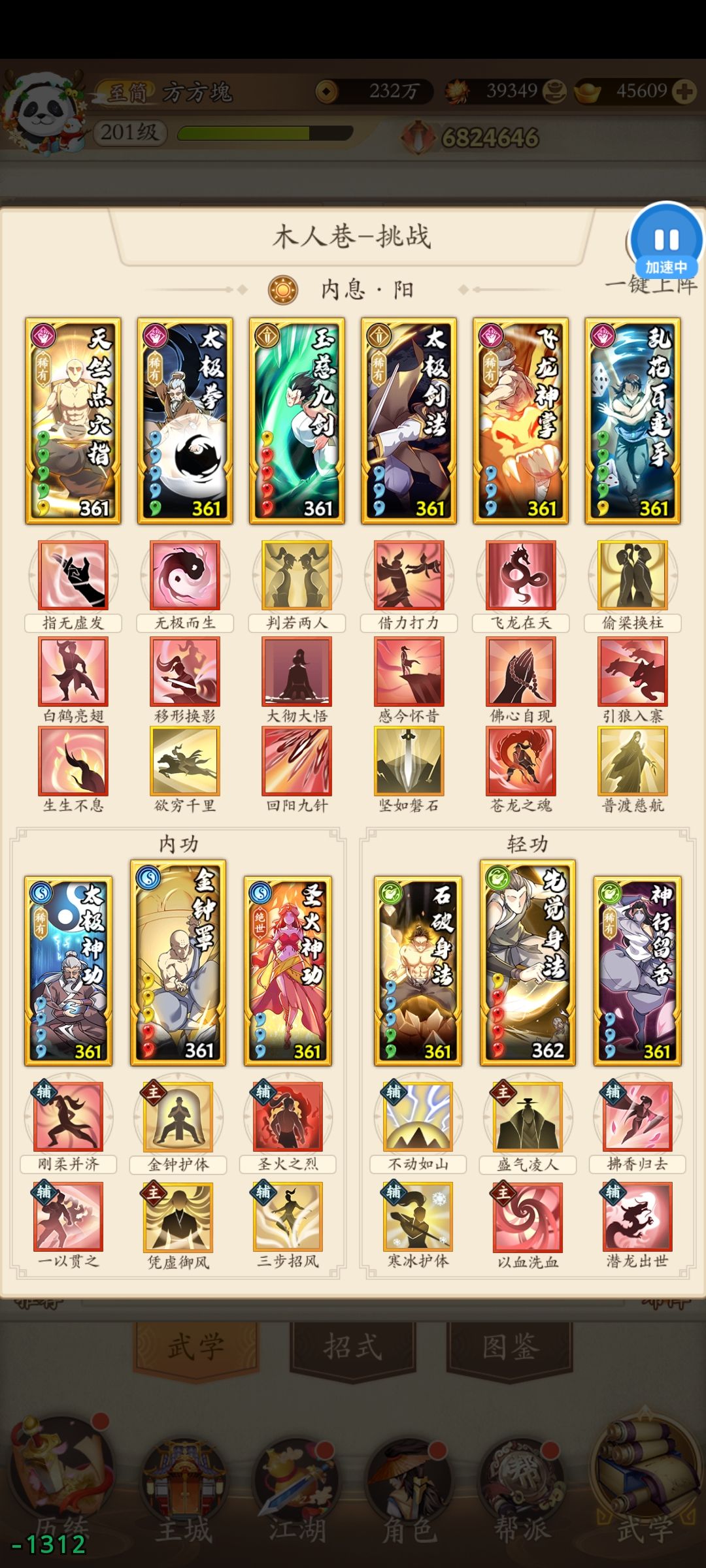 由于太极拳太极剑等输出都挤在这几回合,不带大彻大悟总感觉怪怪的。