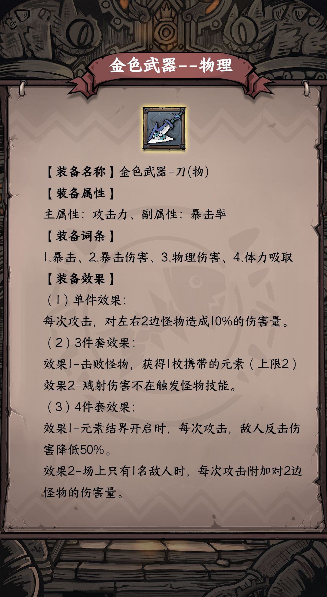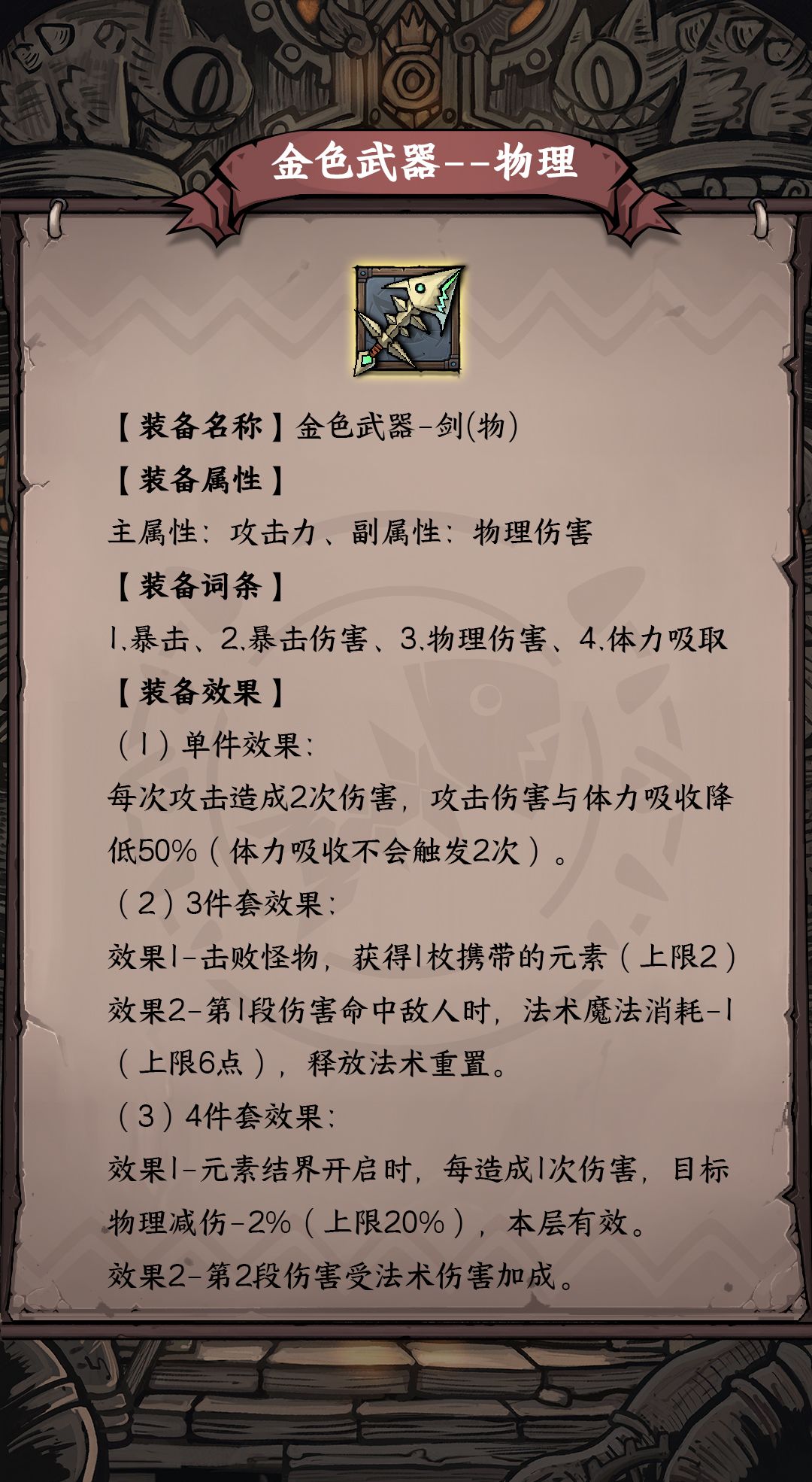 金色武器--物理和魔法,金色武器除了固有的属性和词条,它们还具有独特的装备效果。