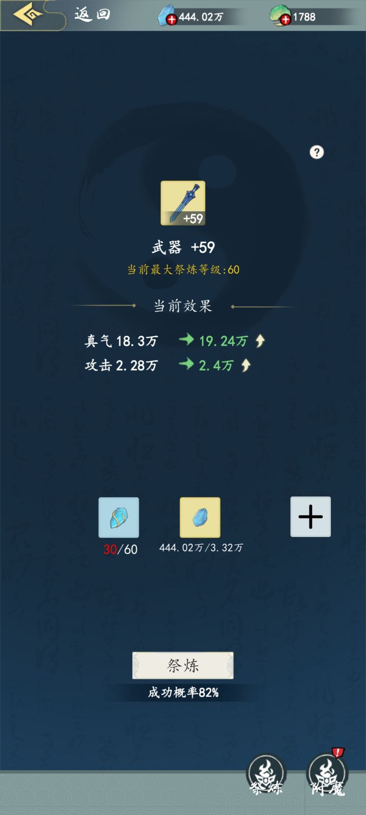装备强化等级越高收益越高,装备强化是根据炼器等级走的,炼器二级强化上限60,炼器三级强化上限90/卡等级的时候建议还是优先给炼器等级提上去,不耽误时间,装备强化优先武器为主,平均强化相对来说收益加成不高