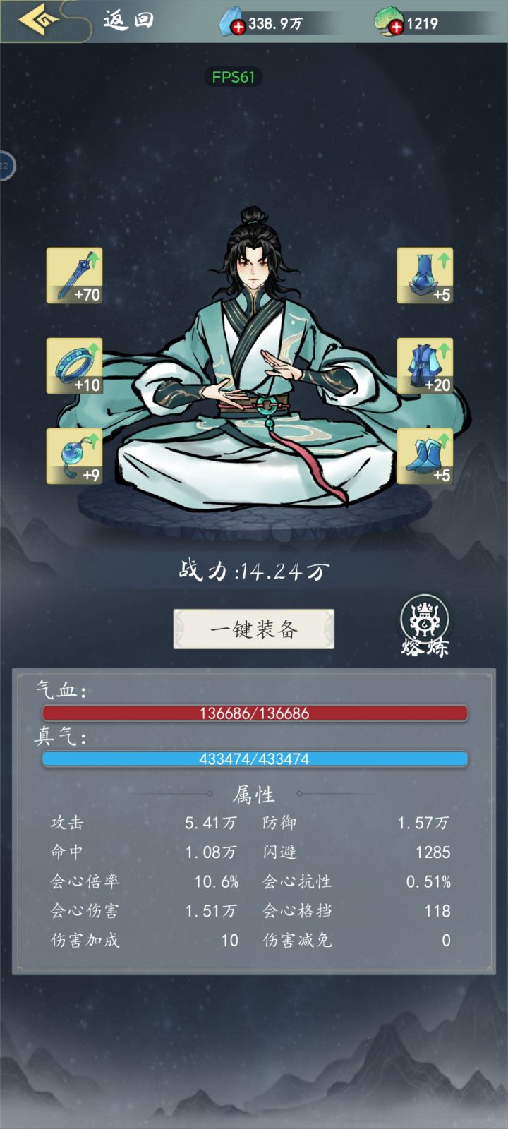 4:点装备点武器右下角可以祭练就是强化武器,提升角色攻击。第一天就强化武器别的都不需要强化。可以在坊市仙玉买强化石,200仙玉100个