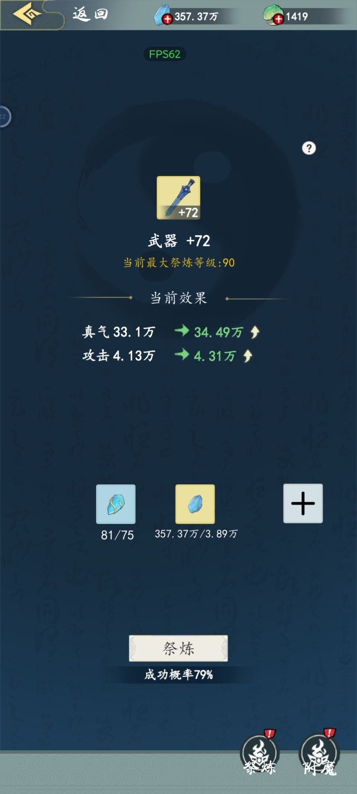 我一共5万多攻击,一个武器祭炼就4万4。闭着眼睛升就完事了