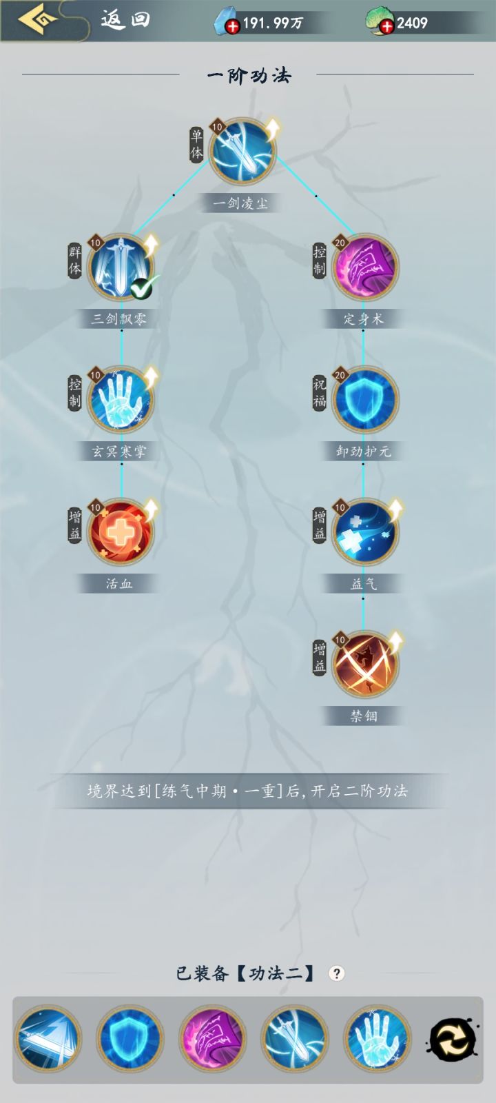 带3个技能三剑+三火筑基3解锁+狮子吼筑基7解锁,没筑基前带三剑+2个单体攻击技能