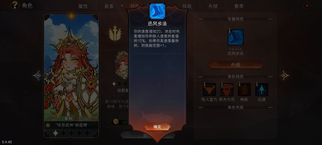 而满级角色没突破的话,各项基本属性平均为230左右,也就是绿和紫即使在差50%基本属性,也就差百分之个位数的生命命中这类,当然还有特质的升级,特质如图,也是属性上的提升,也就是在很后期这些属性会有影响,大佬内测一队蓝绿,也是能打70难的,属性大头在装备,然后是大家都一样的天赋和圣物,这个突破上限影响倒是不大的。反而是突破要消耗海量资源,所以前期绿蓝紫没啥差别,没橙不如直接养绿。