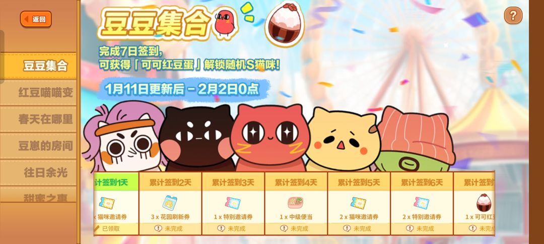 首先这次联动活动会持续99天,即一直到4月18日,分为三期活动,本篇仅针对第一期活动(即红豆喵喵变)