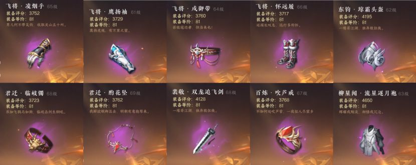 81飞将4件套/79+81的2+2套装(叠流派抵御加坦度)+81君迁2件套+裴敬剑