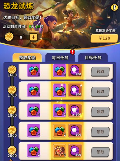 l 玩家在活动期间通过完成每日任务和目标任务可以获取恐龙积分,积分达到可以领取对应奖励