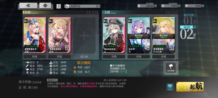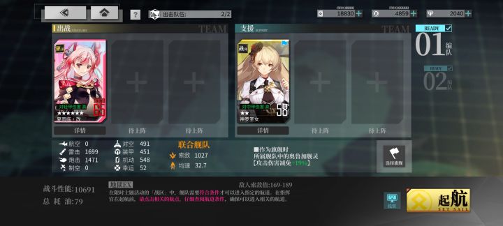 上路8/9战下路7毫无疑问选下,带路需要2战列旗舰+4驱逐,外加一个凑索敌的船(不上主力6船1000索敌不太够)。省油索敌船选一星海伦娜,输出不够选正航。我带补给练级。值得一提的是下路进m点五战两回油,极好的练级路线。不想练战列,驱逐重巡都有练级需求的上路六战进m也不错。