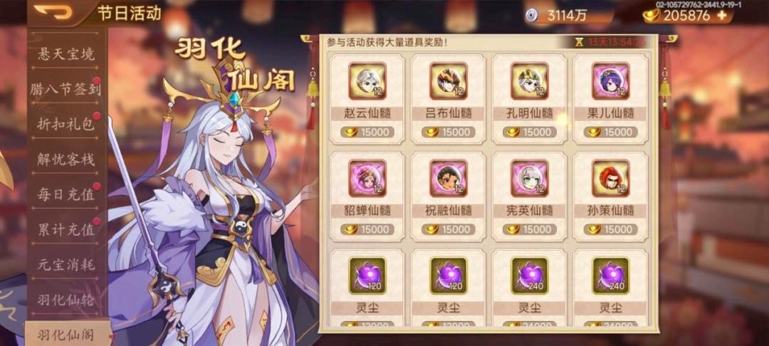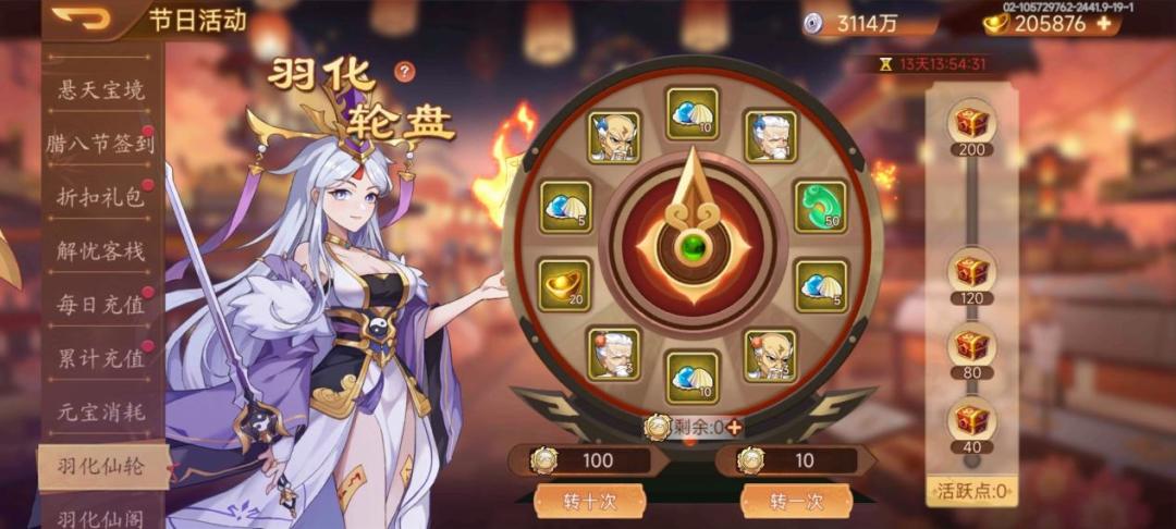 活动内容:活动期间使用“六壬式盘”可以转动羽化仙轮,仙轮概率掉落蓝珍珠、于吉仙魂、于吉资石、水镜仙魂、水镜资石等道具。蓝珍珠可于羽化仙阁兑换奖励。
