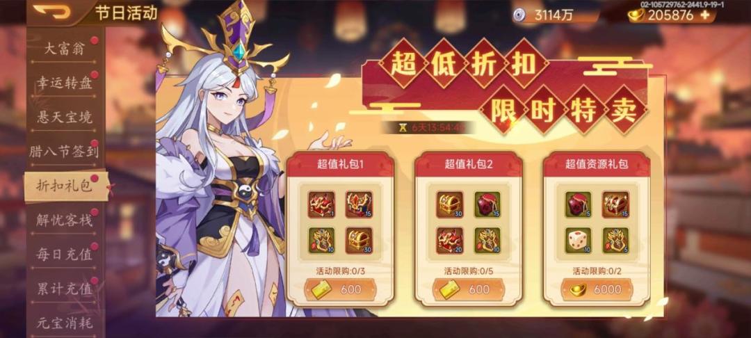 活动内容:活动期间,超值礼包限量折扣出售
