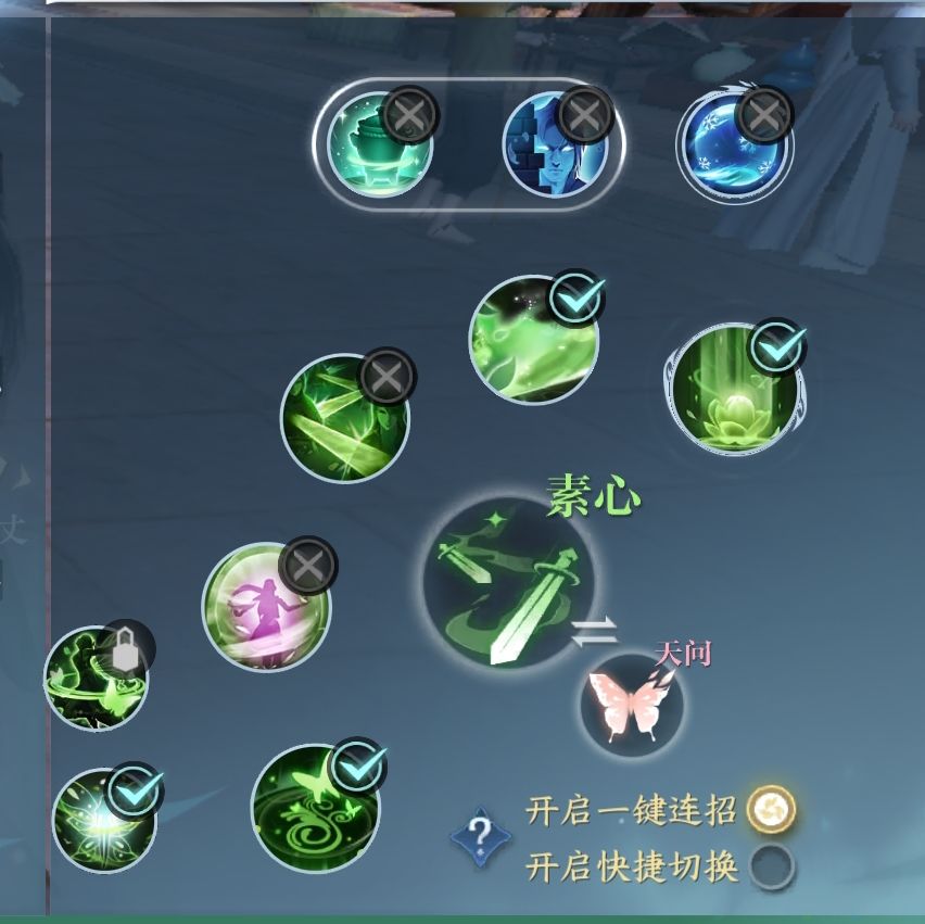 3,奶妈是可以一键连招的,特别是点绛,也就是平A,不开一键连招的时候不能长按连续平A很累,所以一键连招是必须打开的,但并不是所有技能都适合一键连招,比如约定,山盟,扶风,长歌之类的,必须手动释放,所以素问算是半一键最好。