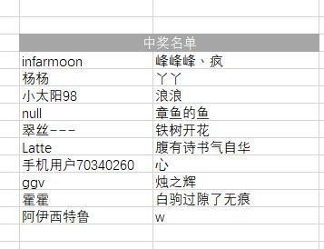 公布一下本期活动中奖名单: