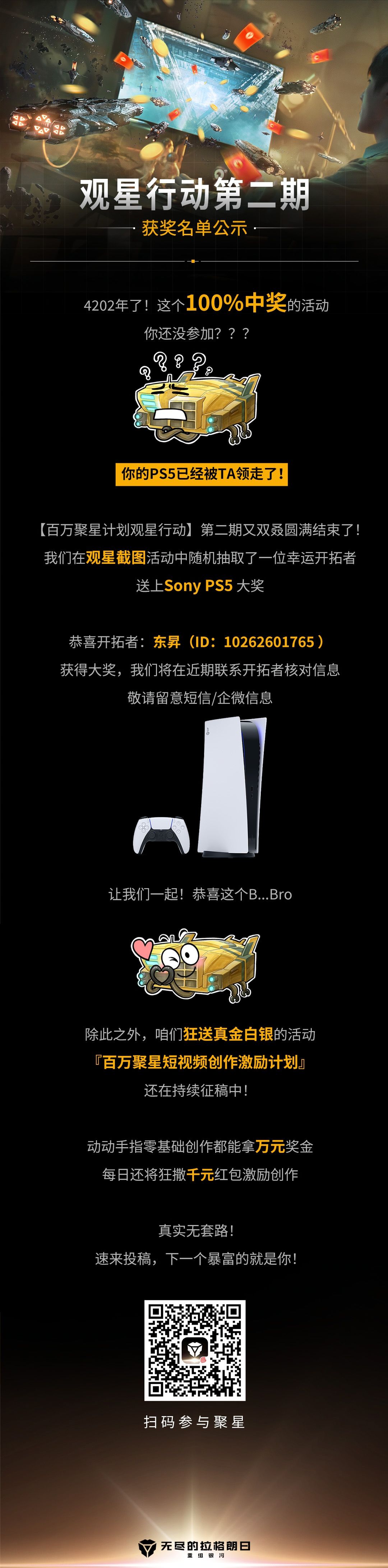 《无尽的拉格朗日》—— 你的Sony PS5被TA领走辣 | 观星行动二期获奖名单公示