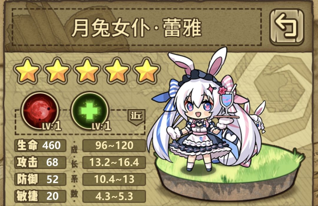 月兔女仆定位是控制辅助,自身坦度非常高,天赋也是加的坦度,输出能力中等,作为主输出还是略有欠缺。突破建议0破即可,氪佬高破随意。