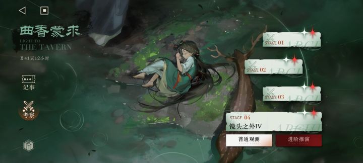 考察:相当于阵容搭配试炼关卡,普通观察比较简单,进阶推演生存较难
