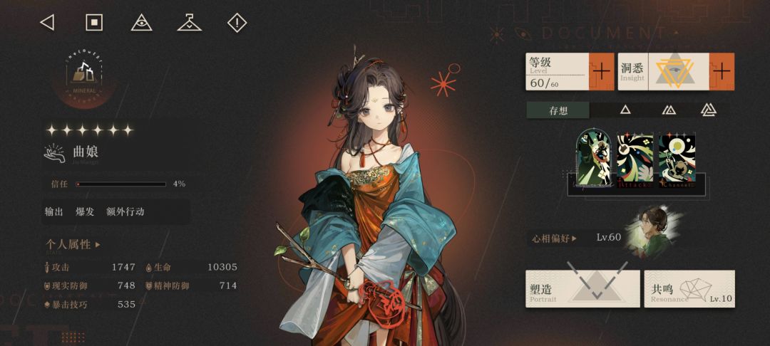 六、曲娘养成建议养成:洞悉(图6)心相(图4)共鸣(图5)出卡方式