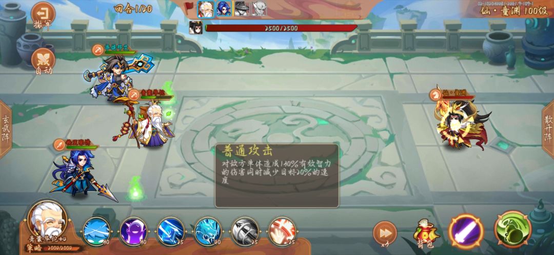 五觉主动,全体回血,智力系数180(213)%,全体30(41)%免伤(可清除)。(括号内为满专属系数)