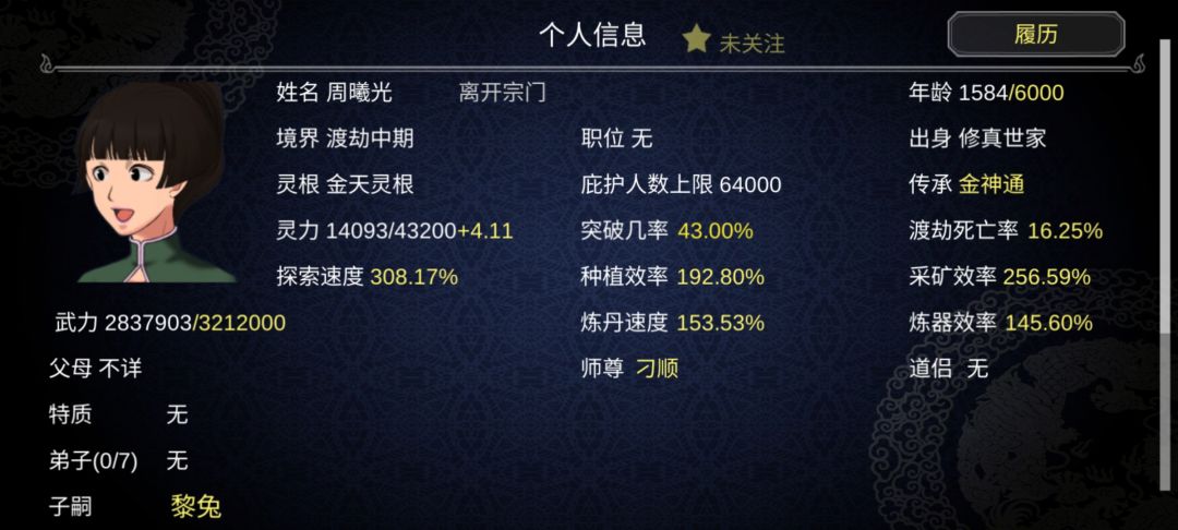 小周又被魔修掳走了,我觉得这个女人是非太多,明明没有貌美标签感情事件一大堆,给她配了最好的装备让她快点飞,结果带着我的装备被抓走了。另外这个存档实在是太大了,每次打开都要等半天,打算重开了,所以,小周的故事到此结束了。