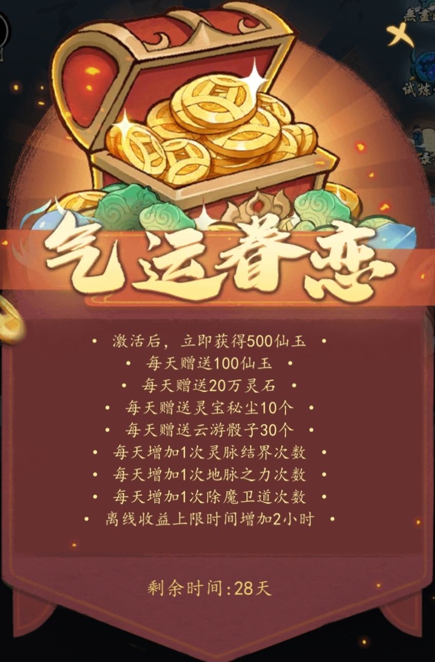 3.关于升级。离线和在线获取经验是一样的,刷怪越快经验越高,所以要能秒怪最好,技能带能秒怪的就行。没有月卡离线最长10小时,月卡额外增加2小时。没有月卡第二天也能结丹,也能冲榜,福利很多,如果要累积优势可以购买一个,这样玩起来更舒服。